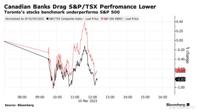 智通财经APP获悉,周五,加拿大最大的一些银行,包括丰业银行(BNS.US)、蒙特利尔银行(BMO.US)和多伦多道明银行(TD.US)的股价下跌超过2%。银行股是标准普尔/多伦多证券交易所综合指数中权重最大的板块,加拿大主要股票基准的跌幅超过了标普500指数的跌幅。