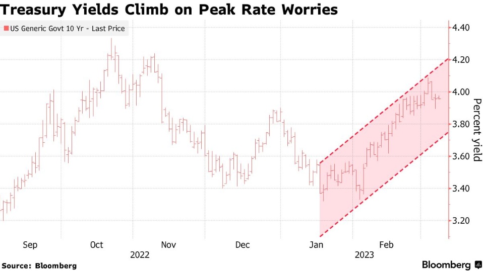 债券投资者在2月份创下有记录以来的最佳开局后重新成为人们关注的焦点,因为交易员意识到押注全球央行的政策转向为时过早。在利率持续飙升、债券价格暴跌之际,他们必须在获得几十年来最高收益率和随着利率持续飙升和债券价格崩溃而过早购买太多之间找到平衡。
