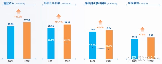 长期稳健提升的业绩有赖于公司优良的盈利能力。2022年公司毛利率自去年同期的26.45%增加至29.39%,同比增加11个百分点,每股收益则从0.86元提升至0.92元。全年净利润达人民币8.24亿元,同比增长5.4%,净利润率保持双位数,达10.7%。