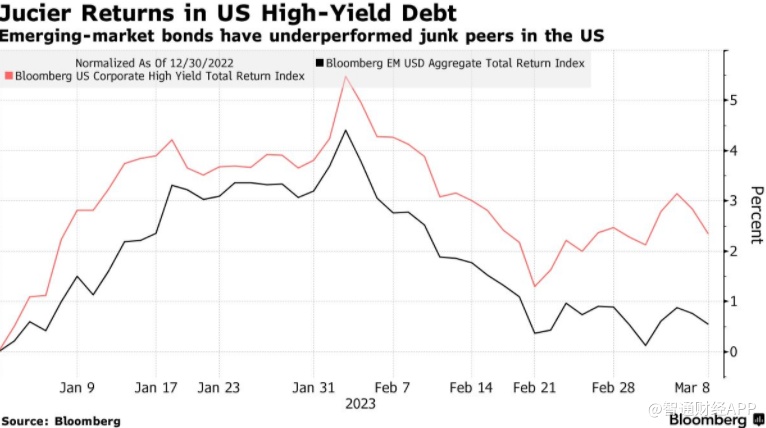 新兴市场债券的表现逊于美国垃圾级债券