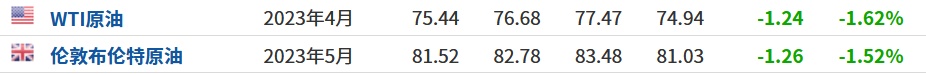 3.截至发稿,WTI原油跌1.62%,报75.44美元/桶。布伦特原油跌1.52%,报81.52美元/桶。
