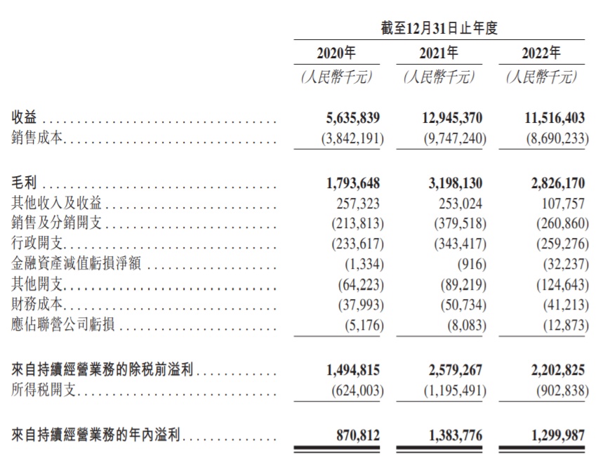 财务方面,于2020年、2021年以及2022年度,中亿基业收益分别为约56.36亿元、129.45亿元、115.16亿元人民币;同期,年内溢利分别为8.71亿元、13.84亿元、13.00亿元人民币。