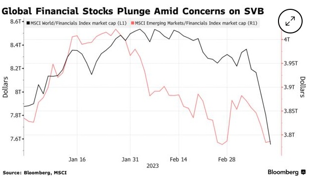 (全球金融银行股因市场对硅谷银行事件担忧而下跌)