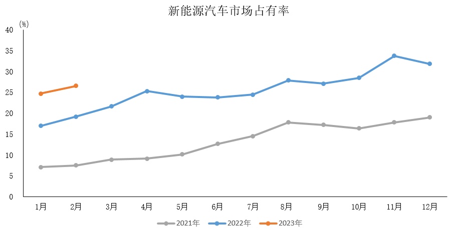 智通财经APP获悉,3月14日,中汽协发布2023年2月新能源汽车产销情况简析。统计分析,2023年2月,新能源汽车持续稳定增长。2023年2月,新能源汽车产销分别完成55.2万辆和52.5万辆,同比分别增长48.8%和55.9%,市场占有率达到26.6%。2023年1-2月,新能源汽车产销分别完成97.7万辆和93.3万辆,同比分别增长18.1%和20.8%,市场占有率达到25.7%。