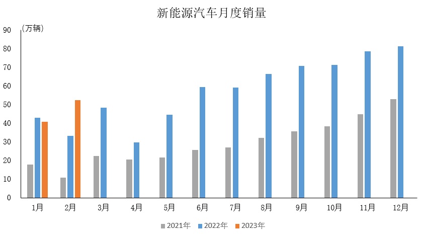 2023年2月,在新能源汽车主要品种中,与上月相比,纯电动汽车和插电式混合动力汽车产销呈明显增长,燃料电池汽车产量呈较快增长、销量大幅下降;与上年同期相比,纯电动汽车和插电式混合动力汽车产销呈较快增长,燃料电池汽车产销呈明显下降。