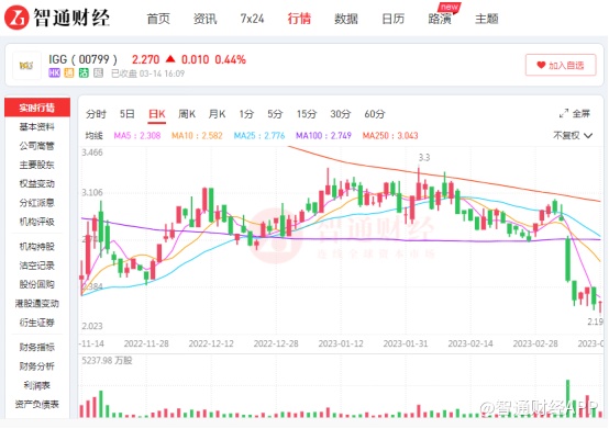 上市公司年报业绩密集披露期,公司业绩的大起大落往往牵动着投资者的心绪。3月7日,一则突如其来的业绩预警使得IGG(00799)当日股价大跌15.86%,几乎跌回去年年底股市整体反弹前的水平;其后数日,投资者如惊弓之鸟,带累公司股价接连下挫,截至3月14日收盘于2.27港元。