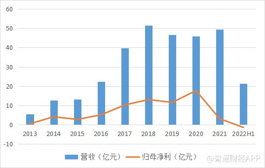 从以往业绩来看,自2018年后公司业绩便体现出增长承压的态势,净利润更是于2021年大幅走低。而2022年上半年,业绩进一步下行,净利同比由盈转亏。