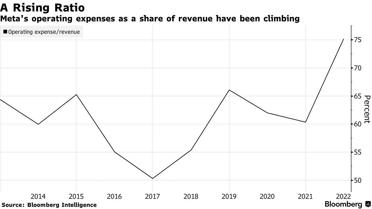 来自Bloomberg Intelligence的分析师Mandeep Singh和Damian Reimertz写道,Meta在2023年削减30亿美元的经营费用可能是为了使公司的支出与营收增长速度保持一致。“我们认为,第二轮裁员的主要重点将是研发部门。”