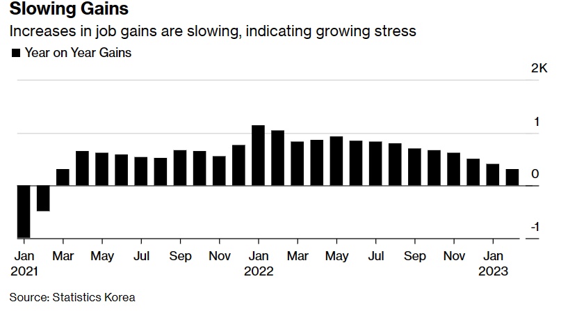 韩国经济在上季度比前一季度萎缩。由于当前季度的前景看起来颇具挑战,尤其是出口面临严峻挑战,就业增长水平似乎正在放缓,一些迹象甚至表明雇主越来越不愿招聘新员工。