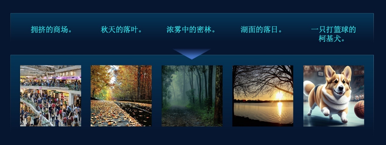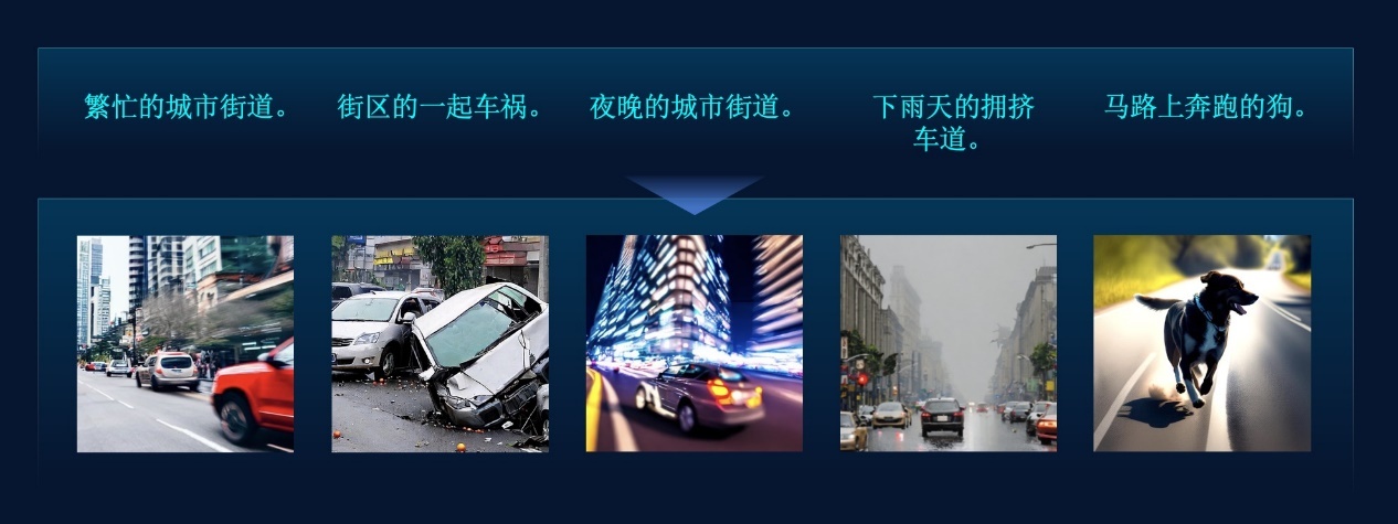 “书生2.5”同时具备AIGC“以文生图”的能力,可根据用户提出的文本创作需求,利用扩散模型生成算法,生成高质量、自然的写实图像。例如借助“书生2.5”的以文生图能力帮助自动驾驶技术研发,通过生成各类真实的道路交通场景,如繁忙的城市街道、雨天拥挤的车道、马路上奔跑的狗等,生成写实的Corner Case训练数据,进而训练自动驾驶系统对Corner Case场景的感知能力上限。