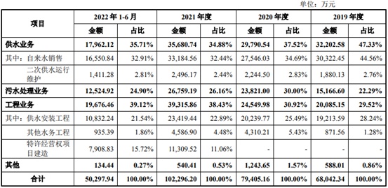 报告期内,联合水务主营业务收入构成如下:
