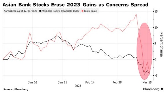 智通财经APP注意到,亚洲银行类股开盘继续下挫。投资者对瑞信(CS.US)的健康状况感到担忧,同时硅谷银行的突然倒闭也引发了市场的担忧。