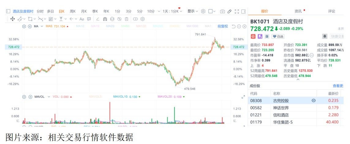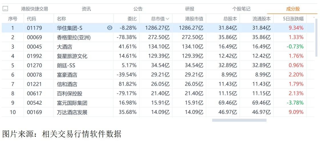 华住集团(01179)为市值龙头,是唯一超过千亿港元的标的,近60日涨幅为27%;香格里拉(00069)市值272亿港元,近期表现最佳,涨幅达到56.82%;而复星旅游文化市值128亿港元,涨幅为17%,也还不错。不过相比于其他酒店行业,复星旅游文化前景更宽广,值博率更高。