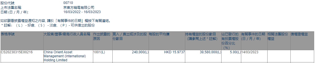 智通财经APP获悉,香港联交所最新资料显示,3月14日,China Orient Asset Management