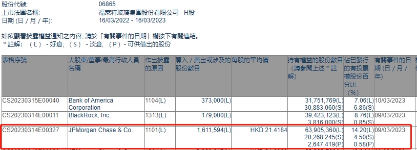 智通财经APP获悉,香港联交所最新资料显示,3月9日,小摩增持福莱特玻璃(06865)161.1594万股,每股作价21.4184港元,总金额约为3451.78万港元。增持后最新持股数目约为6390.54万股,最新持股比例为14.20%。
