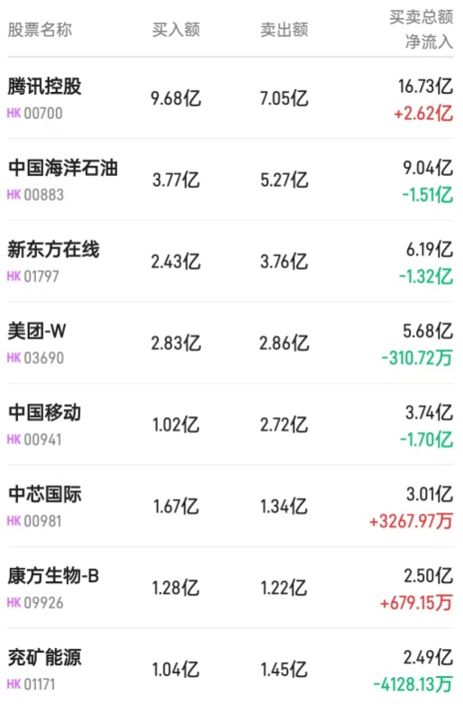 此外,中国移动(00941)、快手-W(01024)分别获净买入458万、405万港元。而国药控股(01099)遭净卖出2696万港元。