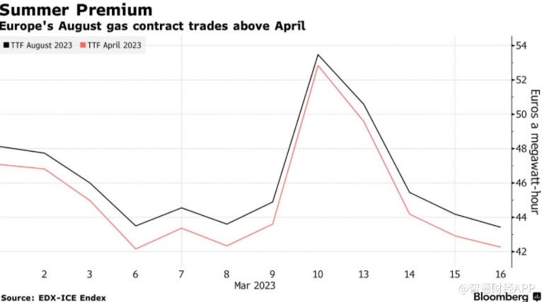 如果今年出现类似的干旱天气,将增加欧洲天然气市场的压力,因为俄罗斯供应有限,而亚洲买家将争夺液化天然气。欧洲8月份天然气合同的交易价格现在比4月的价格略有溢价。