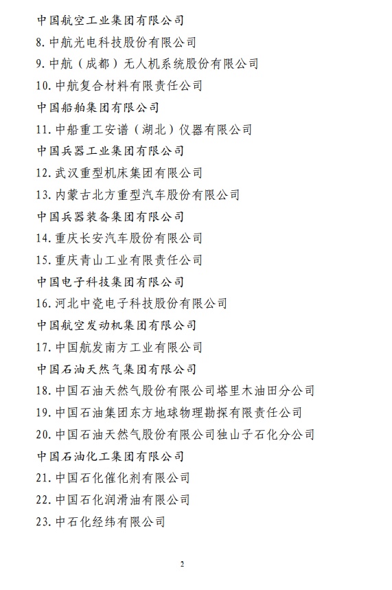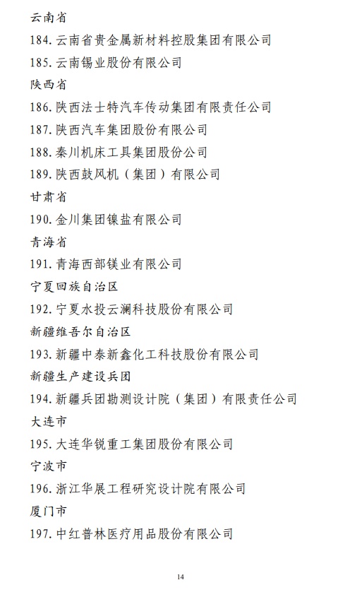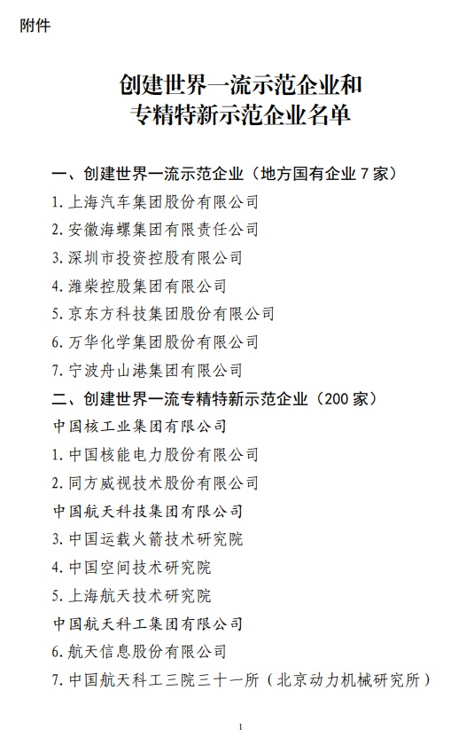 关于印发创建世界一流示范企业和专精特新示范企业名单的通知