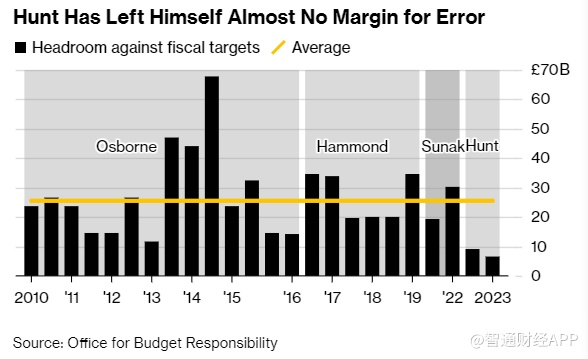 当地时间3月15日,亨特正式发布《2023年度春季预算案》(Spring Statement 2023)。亨特表示,在2027- 2028年,债务占GDP的比例将下降,缓冲资金为65亿英镑(79亿美元),这是自2010年预算责任办公室建立英国财政框架以来的最小差额。