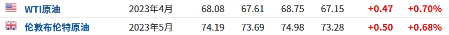 3.截至发稿,WTI原油涨0.70%,报68.08美元/桶。布伦特原油涨0.68%,报74.19美元/桶。