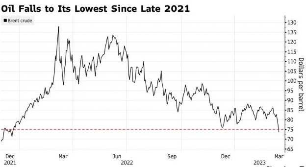 周三,全球市场动荡不安,瑞士信贷(CS.US)的动荡引发了银行业投资者的恐慌。危机蔓延至大宗商品,油价跌至15个月低点。布伦特原油本周迄今下跌10%,至每桶不到75美元,不过在瑞士货币当局向瑞士信贷提供支持后,美东时间周四早盘跌幅有所收窄。