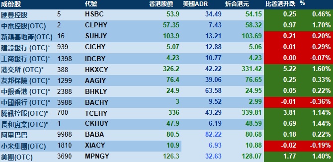智通财经APP获悉,周四美股三大指数集体上涨,港股ADR指数上涨,按比例计算,收报19305点,较香港收市涨102.16点或0.53%。