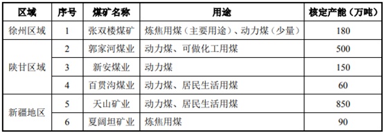 据了解,苏能股份拥有煤炭生产矿井6对,生产能力1,830万吨/年。公司目前开采的煤矿资源分布于江苏地区(张双楼煤矿)、陕甘地区(郭家河煤业、百贯沟煤业、新安煤业)、新疆地区(天山矿业、夏阔坦矿业)。公司现有矿井基本情况如下: