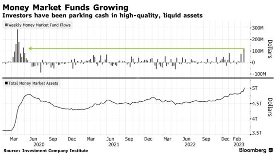 智通财经APP获悉,货币市场基金吸引了自新冠疫情初期以来规模最大的单周资金流入,储户将资金从风险更高的美国银行撤出,寻找一个存放美元的地方。