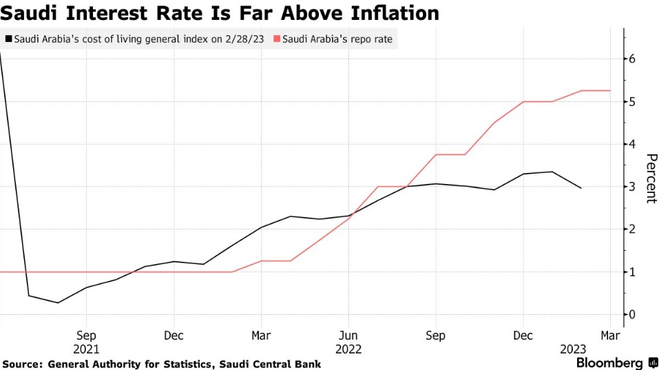 据了解,这个全球最大石油出口国在很大程度上与美国步调一致,以保护其与美元挂钩的汇率制度。然而,该国最近由于受到公寓租金成本的推动,当地房价上涨要温和得多,此外,在2021年出台的国内燃油价格上限是抑制通胀的因素之一。相比之下,美联储则开启了一代人以来最激进的紧缩行动,以给通胀降温。