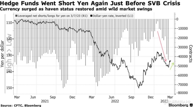 智通财经APP获悉,上周,对冲基金持有六个月来最大的日元看跌头寸,但这是一笔痛苦的交易,因为硅谷银行(SIVB.US)倒闭突然提振了对日元作为避风港的需求。美国商品期货交易委员会(CFTC)的数据显示,截至3月7日当周,对冲基金增加日元空头头寸至去年9月以来最高水平。然而,日元从3月8日触及的近三个月低点反弹,在一周多一点的时间内升值3.5%,原因是投资者削减了对美联储进一步加息的押注,同时银行业动荡推动投资者持有更安全的资产。