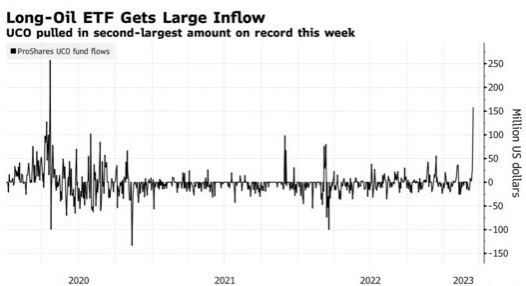 智通财经APP获悉,本周,一种原油交易所交易产品吸引了自2020年以来最多的资金流入,这一迹象表明,在油价暴跌至15个月低点后,投资者可能正在抄底。ProShares两倍做多Bloomberg原油ETF(UCO.US)单日资金流入1.58亿美元,是该基金单日资金流入的第二大规模。该ETF是石油市场上规模最大的ETF之一,资产规模近8亿美元。作为一种杠杆产品,它寻求的回报是其基础指数的两倍。
