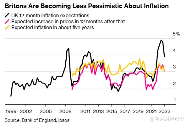 智通财经APP获悉,根据英国央行2月份进行的一份调查,英国家庭认为12个月后CPI为3.9%,低于去年11月调查时的4.8%。这表明,英国家庭对英国央行控制住生活成本危机的能力越来越有信心。这也将让英国央行政策制定者松了一口气,他们担心高通胀预期导致工人要求加薪,从而加剧通胀问题。