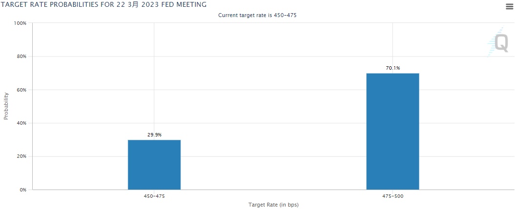 周五,债券市场出现了更大的波动,收益率再次大幅下跌。截至发稿,2年期美国国债收益率下跌10个基点至4.06%,10年期美国国债收益率下跌13个基点至3.45%。根据CME“美联储观察工具”,市场目前预计美联储下周加息25个基点的概率为70%。