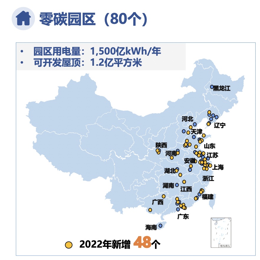目前,零碳智慧园区已成为各地方政府兼顾经济与环境,实现社会可持续发展的有力举措。截至 2022 年底,公司已在22个省、自治区及直辖市布局逾500个再生能源项目,并于年内取得111个新项目,同时落实发展 80 个零碳智慧园区,业务涵盖多能(冷、热、电)联供、光伏、储能、充换电站、工商客户综合能源服务等多个领域。