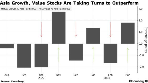美国和欧洲银行业的动荡导致市场对利率预期进行重新定价。截至3月18日,外国投资者连续第四周抛售除中国外的亚洲新兴市场股票。近几个月来,围绕成长股和价值股的争论从未停止,围绕美国货币政策路径和全球经济前景的不确定性使得出结论变得困难。