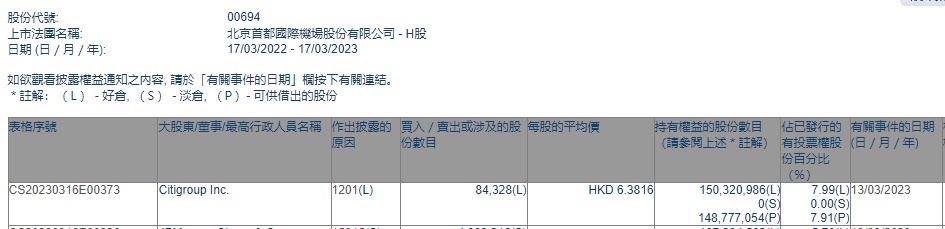 智通财经APP获悉,联交所最新资料显示,3月13日,Citigroup