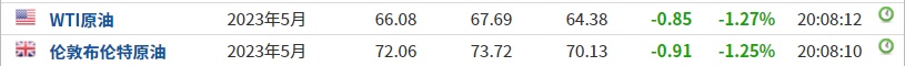 3. 截至发稿,WTI原油跌1.27%,报66.08美元/桶。布伦特原油跌1.25%,报72.06美元/桶。