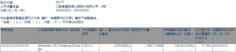 智通财经APP获悉,香港联交所最新资料显示,3月16日,Mitsubishi UFJ Financial Group,