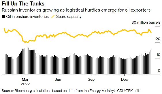 到目前为止,还没有实质性的证据表明俄罗斯将在3月份实施每天50万桶的减产——尽管西伯利亚油田产量的下降可能需要一段时间才能体现在波罗的海或黑海港口的石油流量上。另一个迹象表明,俄罗斯政府可能尚未实施生产削减计划,该国原油储油罐自4月以来首次突破1500万桶。