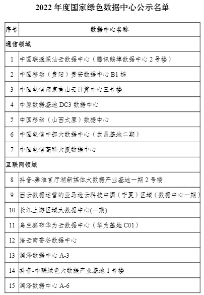智通财经APP获悉,3月21日,工信部节能与综合利用司公示2022年度国家绿色数据中心名单,中国联通深汕云数据中心等43家数据中心入围。名单显示,本次入围的国家绿色数据中心涉及五大领域,包括通讯领域7家、互联网领域17家、公共机构领域11家、能源领域1家、金融领域7家。