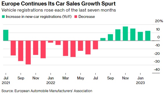上个月英国和西班牙的销量增长尤为明显,分别增长了26%和19%。德国的汽车注册量从1月份的下降中回升至增长2.8%。