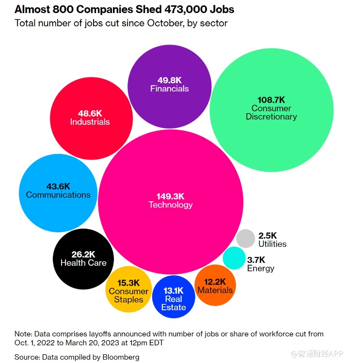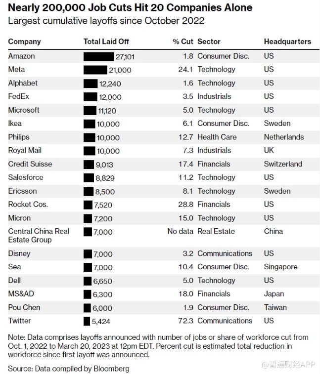 智通财经APP获悉,根据外媒对裁员的分析,自去年10月1日以来,世界各地各行各业的公司已经解雇了近50万名员工。