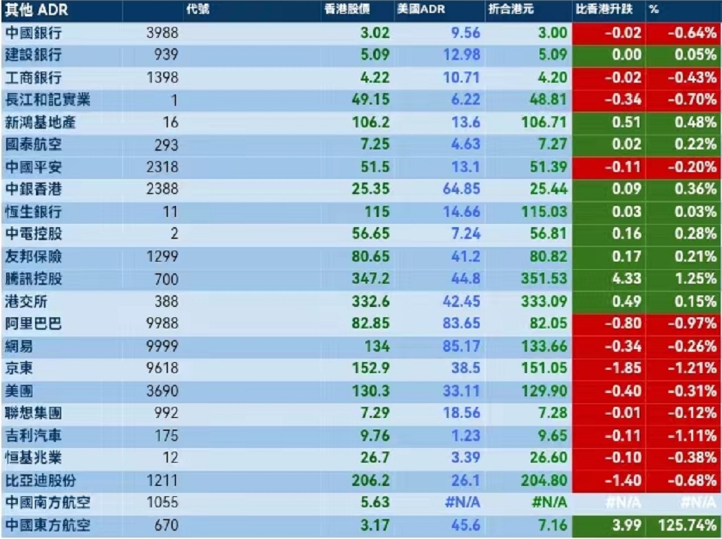 智通财经APP获悉,周三美股三大指数集体下跌,港股ADR指数上涨,按比例计算,收报19624点,较香港收市涨33.35点或0.17%。