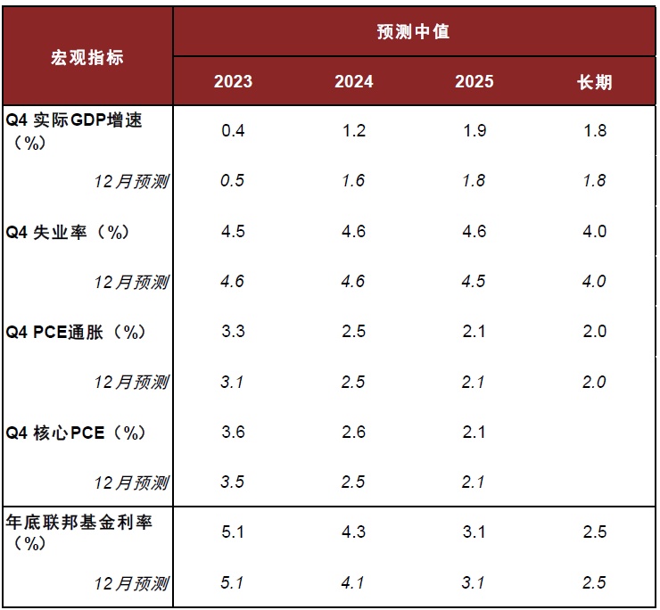 但降息也不会很快到来,利率在高位停留更久(high for longer)的指引犹在。最新公布的点阵图与去年12月没有太大变化,美联储官员对2023年底联邦基金利率中值预测保持在5.1%不变,对2024年底的利率预测甚至还上调至4.3%(前值4.1%),这说明美联储官员仍然没有在今年内降息的想法,对明年降息的幅度也比较克制。我们认为这主要因为经济与通胀仍有韧性。美联储在货币政策声明指出,近期数据显示“就业增长加快(picked up)”,而在描述通胀的进展时,删去了“通胀有所缓解(inflation has eased somewhat)”的表述,仅保留“通胀仍处于高位(remains elevated)”的措辞。这说明美联储认为“抗通胀”的任务还没有完成,通胀回到2%还有很长的路要走。