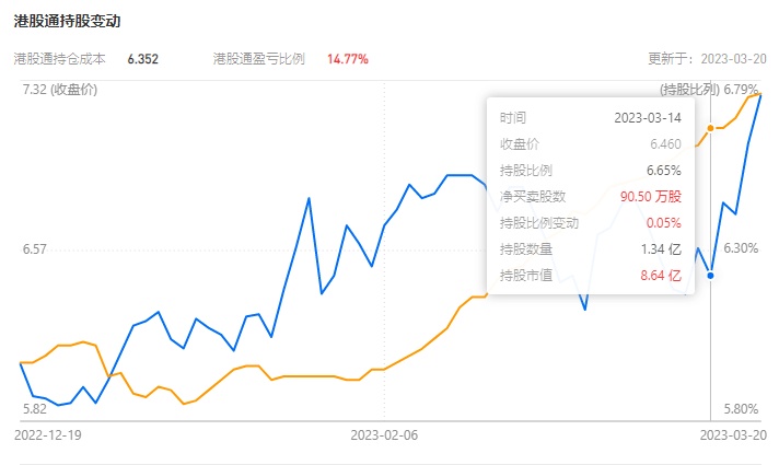 数据显示,绿城管理控股于2022年3月7日纳入港股通,彼时港股通占比为0.02%,后逐步攀升。至3月底港股通持股比例达到1%,7月13日达到2%,3月20日超过6.75%。