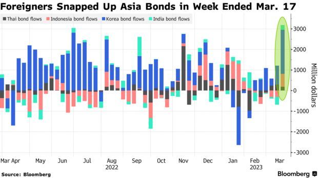 新加坡Maybank Securities Pte固定收益研究主管Winson Phoon表示:“亚洲新兴市场债券提供了一个暂时的避难所,因为它们在这个关键时刻表现相对平静,同时得到了更好的保护。”“除非银行业危机恶化、全球融资环境收紧,否则它们也能更好地免受该地区信贷风险上升带来的影响。”