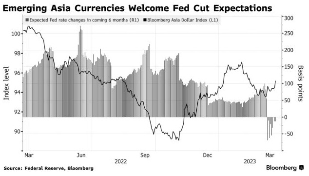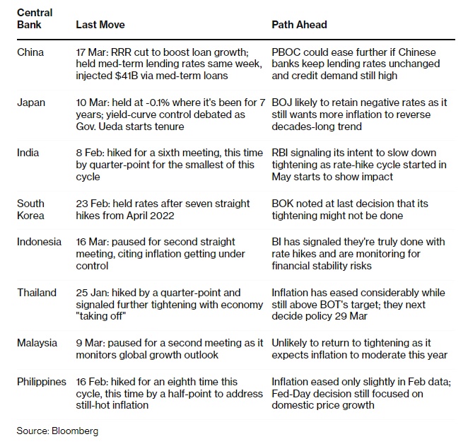 在美联储做出加息决定之前,亚洲新兴市场国家的央行已经准备好放缓货币紧缩周期。而在不损害本国货币的情况下完成这项任务现看起来要容易得多,因为投资者正抛售美元,并押注美国银行业危机将导致美联储利率达到峰值。