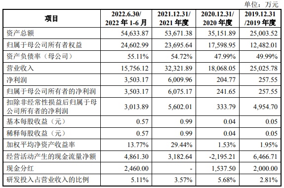 财务方面,于2019年度、2020年度、2021年度,公司实现营业收入约为2.50亿元、1.81亿元、3.23亿元。净利润分别约为257.55万元、204.77万元、6009.96万元。