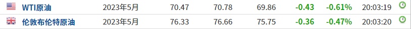 3. 截至发稿,WTI原油跌0.61%,报70.47美元/桶。布伦特原油跌0.47%,报76.33美元/桶。