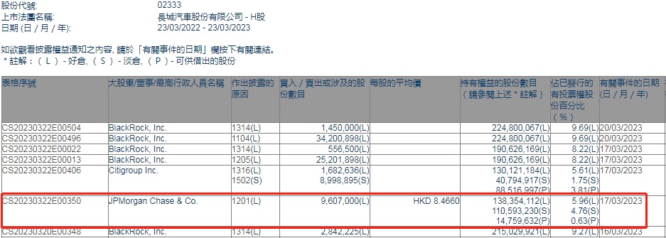 智通财经APP获悉,香港联交所最新资料显示,3月17日,小摩减持长城汽车(02333)960.7万股,每股作价8.466港元,总金额约为8133.29万港元。减持后最新持股数目约为1.38亿股,最新持股比例为5.96%。